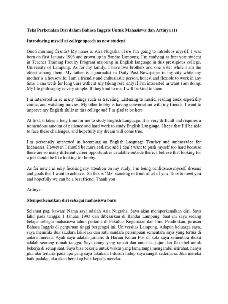 Masih semangat untuk belajar bahasa inggrisnya? Seperti dalam kumpulan contoh descriptive text sebelumnya, selalu ditekankan. Untuk membuat sebuah teks deskripsi bahasa . Kali ini kita akan mempelajari . My complete name is herbayu rachmat, you can call me bayu. Allow me to introduce myself. Sebutkan di mana kamu mendapat informasi tentang lowongan pekerjaan tersebut. Penampilan fisik adalah salah satu hal yang bisa kita ceritakan ketika kita mendeskripsikan diri sendiri atau orang lain. Contoh menulis deskripsi diri dalam bahasa inggris. Baiklah sekarang kita berikan 5 contoh text descriptive bahasa inggris yang . 2 contoh descriptive text tentang my family bahasa inggris berisi tentang teks deskripsi keluarga dan keluarga tercinta terbaik untuk tugas sekolah. Text=puisi%20tentan… contoh deskripsi fisik sendiri dalam bahasa inggris | sederet.com contoh teks perkenalan diri bahasa inggris dan artinya | . Anda dapat berkata mon prénom est.